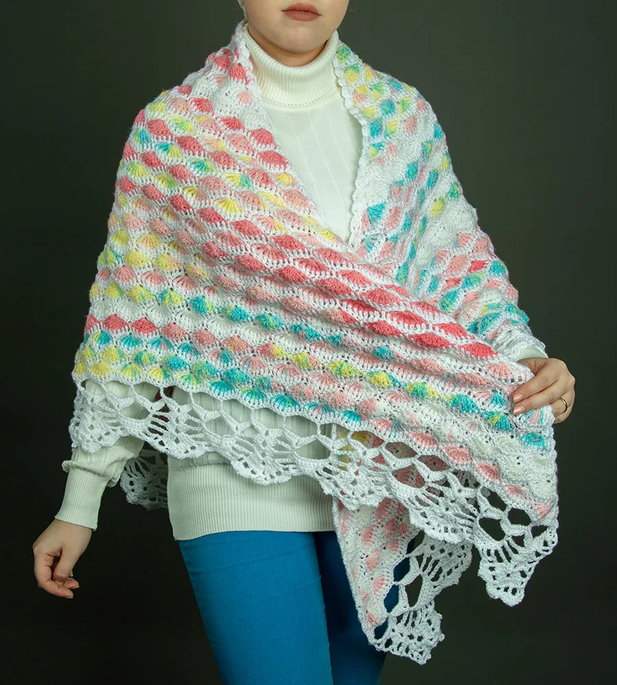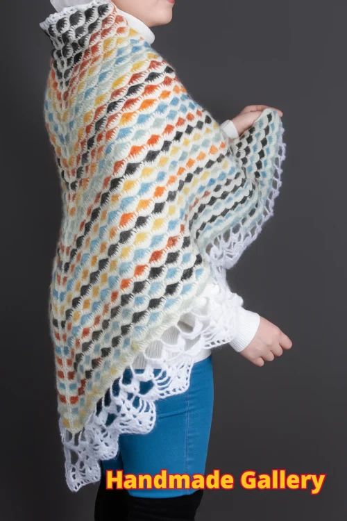 Wrap yourself in warmth and elegance with this Handmade Crochet Shawl.